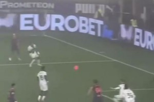 機(jī)敏!實(shí)拍:皮奧做球,迪馬爾科斜刺里殺出小角度打穿帕爾馬
