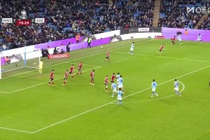 曼城8-0??巳爻牵⒁姿咕珳?zhǔn)傳中助攻,奧賴?yán)^球攻門得手!