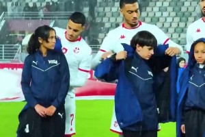 賽前大雨傾盆,突尼斯球員脫下外套為小球童披上!